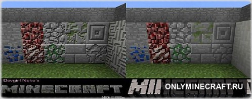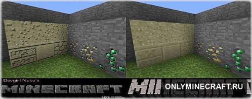 Этот ресурс пак стандартный, только лишь немного..ну как немного..отлично проработанный. Ну кому-то покажется что это не "сок", что это фуфло, или того хуже...))):D Ну вы поняли. Теперь блоки..а точнее их текстура очень сильно выделяется. И если раньше песчаник сложно было издали узнать в песке, то сейчас как нефиг делать. Суть- смотри фотки и поймёшь!
