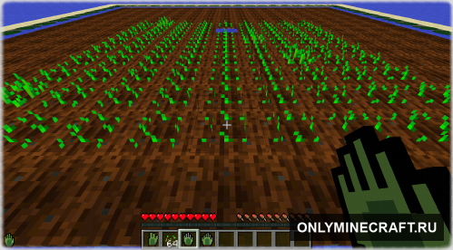 Привет всем фермерам и лентяям. Эта модификация очень проста и всегда вам поможет в трудный момент. Если честно с ним жизнь фермера станет просто сказочной. Вы только сами подумайте, вам нужно засадить каждую грядку (1 блок) и так почти целое поле, кубов да 400х200 например. И что, каждый блок проходить. По сути да, но это долго. Если рассматривать жизнь, то по сути всё так же, вам и разрыхлить надо, ямку выкопать, посадить, закрыть землёй семя и полить. А дальше ещё и ухаживать, в отличии от игры. А теперь вам нужно будет нажать но кнопку и всё тут, делов то. Дальше у вас в руке тока семена должны лежать, да знай направляй примерно куда садить. Так же и с сбором (рука пустая), пробежался, тока мышь наводи и всё. Так что мод реально для ленивых, ибо фермеров, у которых и без того делов. Приятной игры и удачи вам! Огромного урожая!