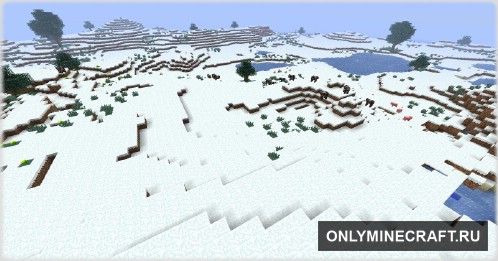 Даже блоки снега (если они образовывались), то были всего в один слой, как и кромка. Но теперь, после установки данной модификации, снега станет куда больше. Появятся сугробы, снег будет ложиться в несколько слоёв, будет у обычного игрока сделать снеговика (Снежного Голема).