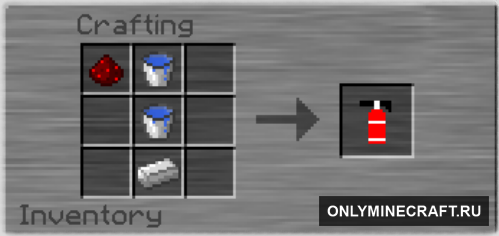 Всем привет! Вы бывали в такой ситуации, когда моб, или грифферы подрывали\поджигали ваш дом, а он был очень красивым,и сделан из дерева (шерсти и других горящих материалов). И он сгорает до тла... Или вы случайно поджигаете лес, а огонь распространяется и не останавливается, дождя нет как на зло? Если да, то не нужно больше убиваться, и жить в страхе. Теперь вы будете иметь огнетушитель, которым вы сможете быстро и не сложно потушить очаг разгорания, а не уничтожать блоки, бегая и туша огонь рукой. Кто вообще так делает? Вот именно, что только нуб! А ты не нуб, верно!? Тогда качай скорее мод! Приятной игры!
