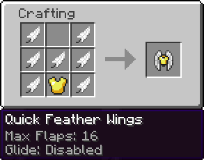 Крафтите один из 10 вариантов полётного средства (от обычных крыльев, до алмазных сверхбыстрых крыльев, а так же от планера до реактивного ранца.