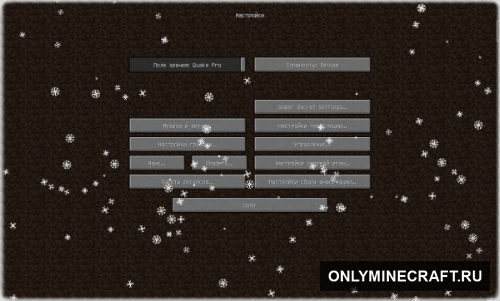 Разработчики модификаций пытались создавать гирлянды, елку с игрушками. Но смотрится это через чур не красиво, мультяшно, не по мужски как то. Но и голых дам в костюмах деда мороза нам тоже не нужно. Поэтому был придуман мод, который в стартовом окне, в окне настроек и выборе сервера, в меню при нажатии на Esc, мы получим настоящий снегопад! При том просто падающие снежинки было слишком просто и скучно. Потому было сделано так, что при наведении курсором на снежинку, она начинает отлетать. При том попасть на снежинку или очень сложно, или не реально. Но суть не в охоте на снежинки, а в том чтобы украсить вашу игрs, и разработчику это удалось! Всем приятной игры и удачи^^