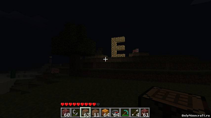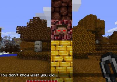 Всё, mod установлен, ещё немного усилий и можно ожидать появления Херобрина. Чтобы он попугал вас своими пустыми очами, вам ещё нужно сделать тотем. Строить его так: внизу расположите два золотых блока, чуть выше расположите блок Херобрина (как скрафтить его, показывает скрин), в самом верху поставьте адский камень. Последний после окончания возведения конструкции следует поджечь. Получится мистическая башня, которую вы можете видеть на иллюстрации. Mod, вызывающий к жизни Herobrine, добавляет ещё и три пластинки.