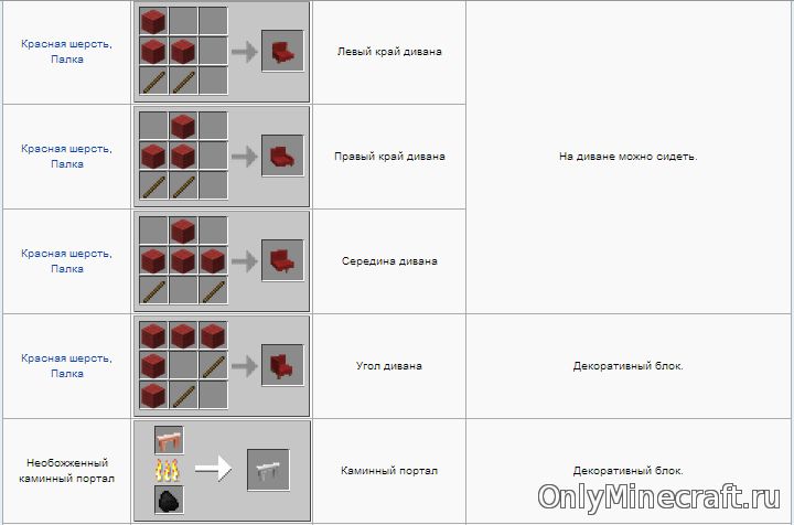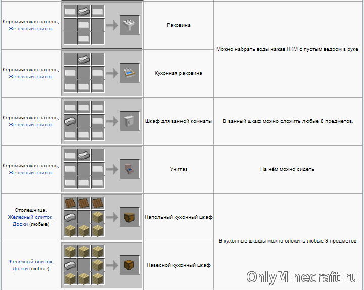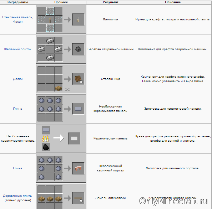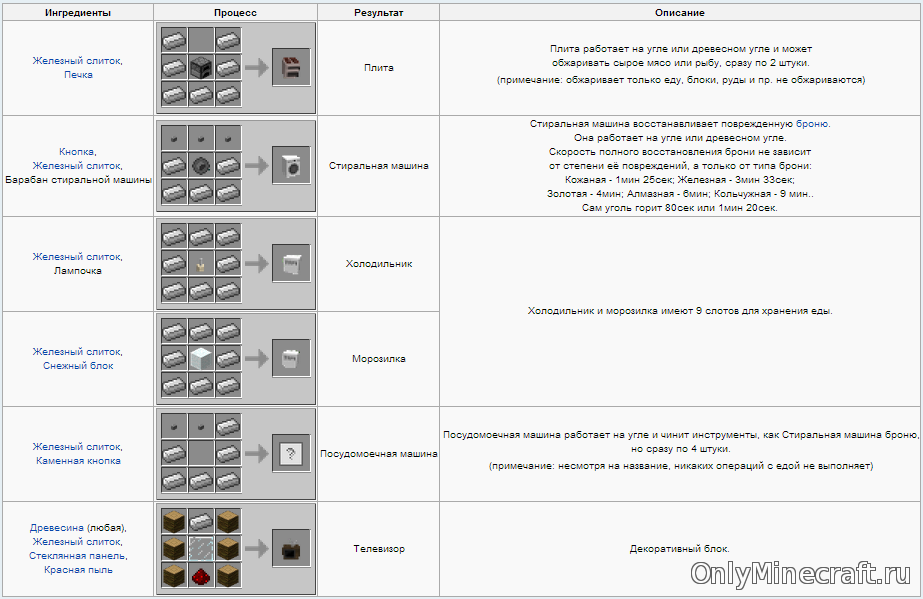 Что ж, пришло время украсить свой дом отличной мебелью и бытовой техникой! В этом вам поможет этот мод. Кучища полезных рецептов ниже. О некоторых мы написали подробно, например о том как как сделать холодильник в майнкрафте.