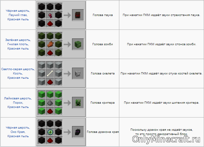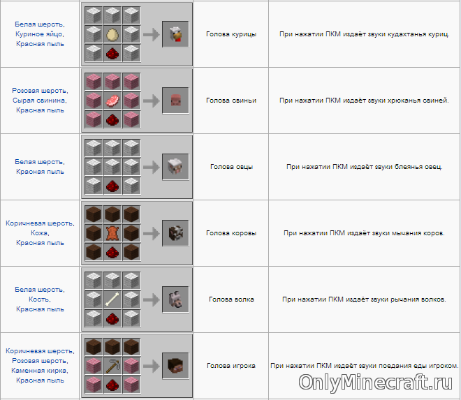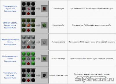 К отдельным компонентам мода Майнкрафт, создающим уютную обстановку, следует отнести трофейные головы – элементы декора: