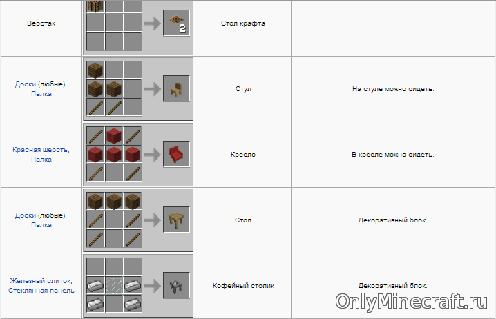Этот мод не единственный. Можно скачать и «Mrcrayfish’s Furniture». Он аналогичен предыдущему. Просто знайте, что у вас в Майнкрафт есть выбор.