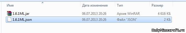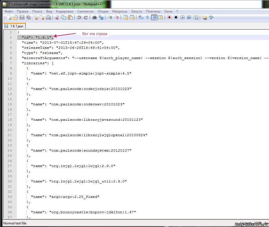 - Далее нужно открыть любым текстовым редактором файл .json и найти строку с "id": "1.6.1", ее также переименовываем на "id": "1.6.1ML".