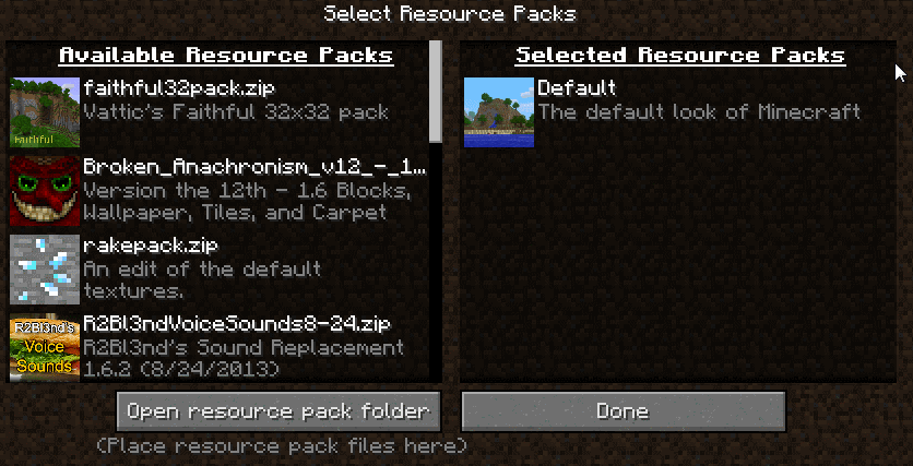 Все еще не ясно как будут упорядочены ресурс паки? Это очень просто! Все, что требуеться, это перетащить любой пак, который хотите использовать, в "выбранные ресурс пакеты" колонке справа, и после этого там, вы можете перетащить выбранные пакеты вверх или вниз по списку, что-бы изменить приоритет. А еще серверные пакеты, будут иметь наивысший приоритет, вне зависимости от порядка.