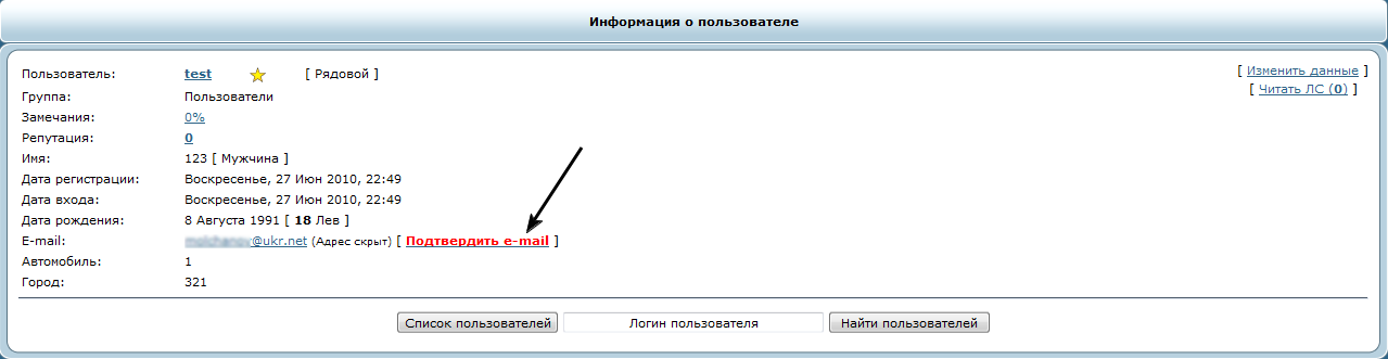 2. Находим поле с почтой и жмем "Выслать активационное письмо".