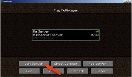 Далее, нажимаем Done, и у вас появится сервер в списке. Зеленые полоски справа, говорят о том, что он работает, а так же показывается онлайн. Далее требуется нажать Join Server.