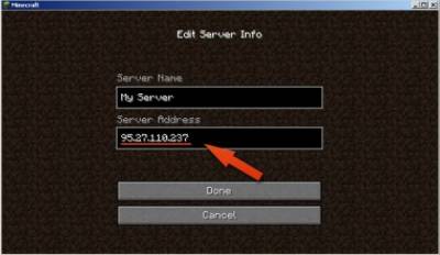 Далее вам нужно ввести имя сервера (это имя будет показываться в списке) и ip сервера
