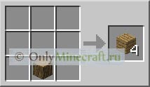 Теперь у нас уже есть необходимые нам заготовки. Да кстати, я надеюсь верстак у вас уже есть, друзья мои. Если нет, обязательно читайте статью как сделать верстак в майнкрафте и делайте его. Ибо это очень важный инструмент в minecraft. На нем мы будем создавать все, без исключения, необходимое в майнкрафте. Расположим дерево на верстаке, так, как показано на фото: