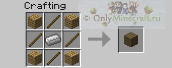 Прежде всего, конечно же нужно сделать штурвал. Когда наш корабль наконец будет построен, мы его поставим. Для этого нам потребуется четыре блока досок, столько же палок и слиток железа. Расположим их на верстаке так, как на фото ниже: