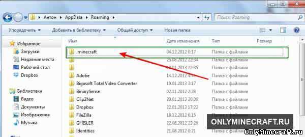 появляется Rоаming, открываем ее, а там уже находится нужный нам minecraft.
