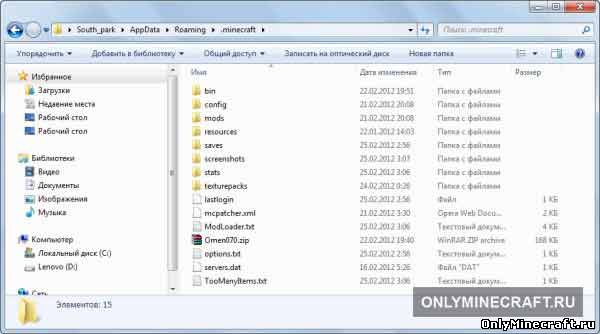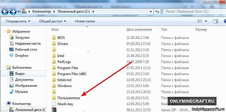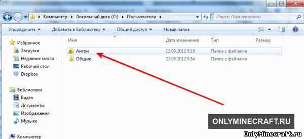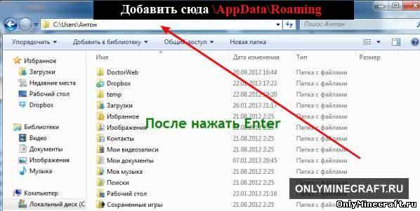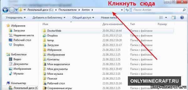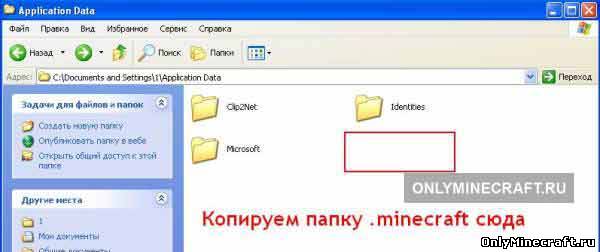 Нажимаем Еntеr и в открывшуюся папочку копируем minecraft: