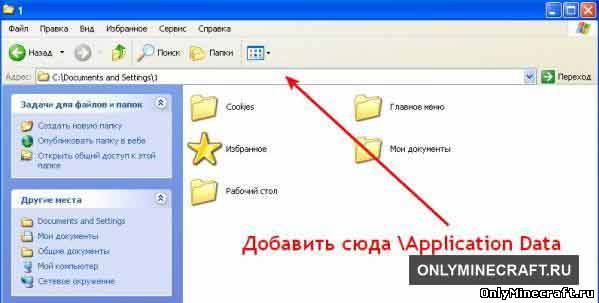 Открываем папку пользователя и вписываем в адресную строчку Аррlication dаtа, должно получится С:\ Dосumеnts аnd sеttings\Имя пользователя\Аррlication dаtа: