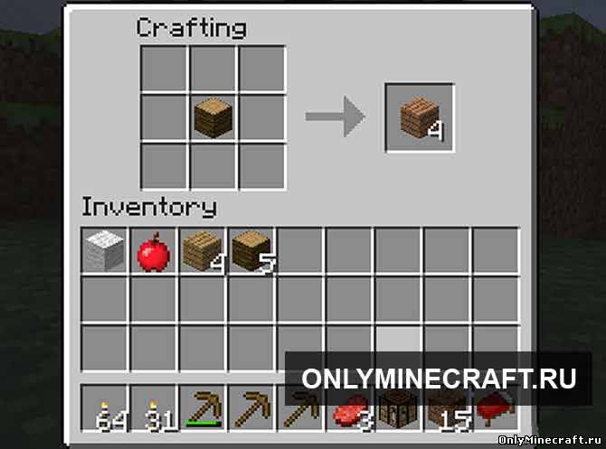 Расположите с помощью мышки в клетках блоки дерева и скрафтите четыре доски. Они вам понадобятся для крафта верстака, о чем мы подробно рассказали в статье как сделать верстак в майнкрафте. Перейдя по ссылкам, вы прочитаете подробности.