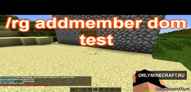 - Команда номер раз. /rg addmember [тут название владений] [тут ник приятеля]. Надеемся, всё тут понятно. Копируете и вставляете в чате Minecraft эту команду, прописываете название принадлежащего вам региона и имя своего друга. Скобки не пишите, они здесь для того, чтобы вам было понятней. Вот так можно добавить в приват человека, который будет вашим гостем, но никак не совладельцем.