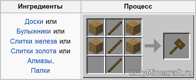 Сделать в Майнкрафт боевой молот нам помогут иллюстрация, палки и один из любых этих блоков: