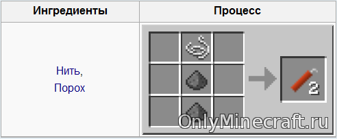 Эти компоненты расположите в том порядке, который вы видите на рисунке. Чтобы бросить ш., не выпуская её из рук, кликните ПКМ. Имейте в виду, что ш. вам в Майнкрафте не подорвать блоки с взрывоустойчивостью более 30.