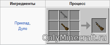 - Приклад. Доски и палки, необходимые для того, чтобы его скрафтить, также отправьте на верстак. Подобно дулу, прикладу больше не найти применение, кроме как быть элементом мушкета.