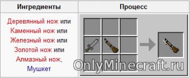 - Сюрприз! Проделав нехитрую операцию по добавлению ножа, вы получите в Майнкрафт мушкет со штыком. Теперь вы сможете атаковать с разных дистанций. Штык выдерживает разное количество ударов (30-781) и способен навредить на 2-6 единиц.