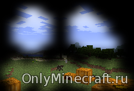 Сейчас в игре можно отыскать только тыквы с прорезями. Но изначально планировалась генерация этих овощей в первородном виде, а прорези должны были делать крафтеры. Посмотрите, каким видит Майнкрафт игрок, нацепивший этот странный предмет.