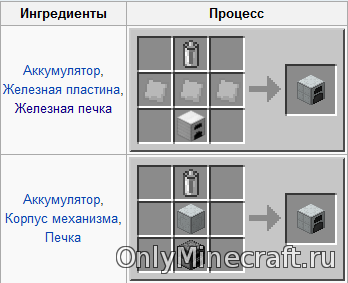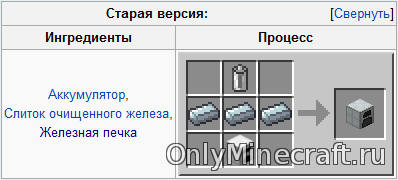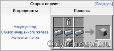 А вот старый способ: возьмите одну железную печку, один аккумулятор и три железных очищенных слитка.