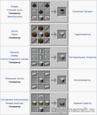 Обычный, базовый, генератор, кроме выполнения основной функции, служит в Майнкрафте ингредиентом для крафта остальных, более сложных и мощных ген. (в их числе, например, геотермальный). Крафтится он по новой версии в Minecraft двумя способами. В старом варианте способ один. Вот первые два (новые):