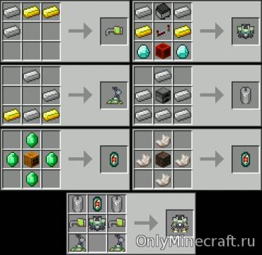 Другой вид роботов называют ездовыми. В отличие от предыдущих колоссов, они совсем небольшие, но зато очень подвижные. В них можно залезать и управлять ими. Чтобы сделать их, нужно поставить на Майнкрафт мод «Magitek Mechs». Крафт вы видите на скриншоте.