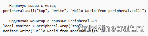 Чтобы можно было дисплей использовать, нужно вызвать метод с помощью «peripheral.call()» или же напрямую подключить монитор посредством «Peripheral API». Например, вы подключили монитор к верхней части компа:
