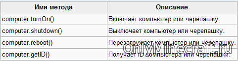 Запомните также, что computer – это переменная, которая указывает на компьютер или робота (черепашку). Вот какие можно задавать в Майнкрафте функции: