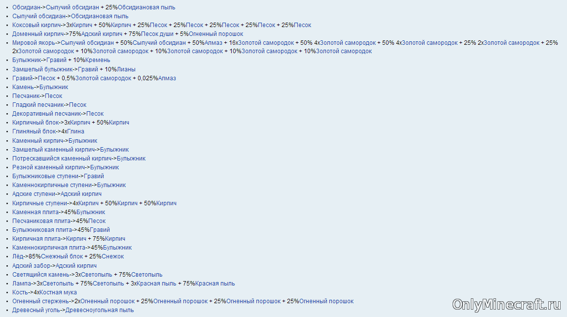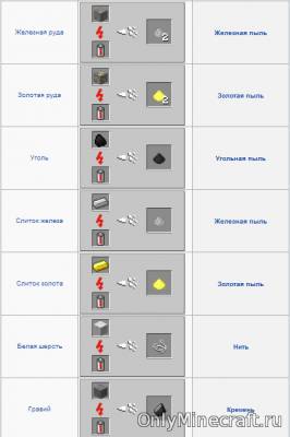- В некоторых случаях аппарат может дробить материалы из других модификаций Майнкрафт.