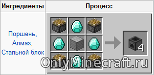 Общее количество необходимых компонентов таково: поршни – 12, стальные блоки – 3, алмазы – 12. Дробители невозможно сделать в Minecraft на блоках, являющихся смежными: должен быть зазор хотя бы в один блок.