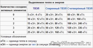 ТВЭЛ (расшифровывается – тепловыделяющий элемент). Это главный источник энергии. Реактор в Minecraft использует три их вида: обычный, счетверённый и спаренный. Остальные элементы вспомогательные.