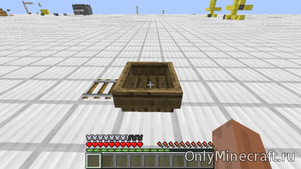- Поставьте лодку таким образом, чтобы слева и справа не было рельсовых блоков. Учитывайте, что толщина пола – один блок.