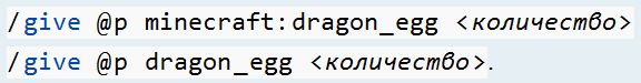 Последнее яйцо, драконье, возникает на вершине портала, как только дракон будет убит. Применения ему пока не нашлось. Является, скорее, символом грандиозной победы в Майнкрафте. Но его можно «сделать» и консольными командами: