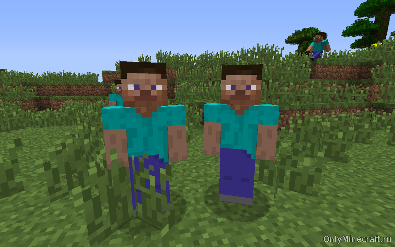 Но, всё же, как сделать человека в Майнкрафт сейчас? Для этой благородной, созидательной цели предлагаем вам воспользоваться модификацией «Human Mod». Люди этого мода пассивны, спаунятся целыми группами. Зато здесь уже людей есть несколько типов. Есть просто человек, есть лучник, который дропает стрелы. А хотите, можете сделать человека с мечом, дропающего это же оружие. В дополнение к этим радостям в модификации присутствует Херобрин. С ним в Майнкрафте будьте поаккуратнее, поскольку, в отличие от человека, он не очень пассивный и мало ли чего может сделать.