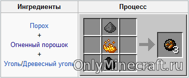 Сделать шар можно, используя огненный порошок, порох и уголь. Эти огнеопасные предметы нужно расположить в инвентаре, как на скрине.