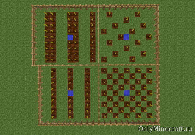 При скоростном выращивании бахчевые в Minecraft засаживаются «шахматкой». Растут плоды очень быстро, но нужно успевать собирать урожай. А если сделать большую ферму, сложно будет найти время для слежением за огородом.