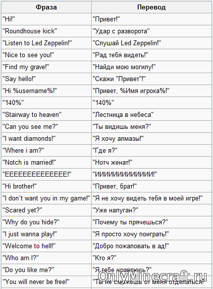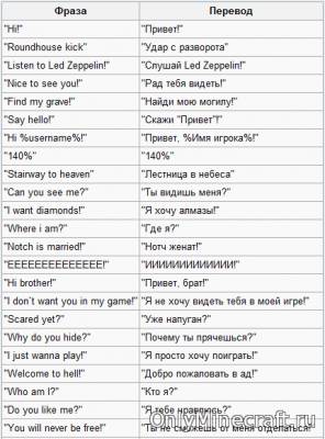 Сюрпризом для игроков может быть появление рядом с Херобрином всемогущего Чака Норриса. Крутой Чак одним пинком может отбросить игрока на тысячу блоков. Вместо актёра могут появиться Плохой Санта и даже Нотч. «Доставая» крафтера, шахтёр пишет в чате разные фразы. Вот примеры некоторых.