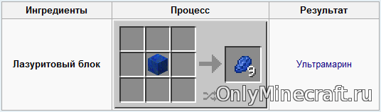 Но из блока его можно добыть, если ультрамарин уже у вас есть, просто он в компактном виде. Однако зачем вам этот способ, если его у вас вообще нет? В этой ситуации выход один: сделать его из р., добавленной в Beta 1.2 Minecraft. Подобно всем неметаллическим р., для дальнейшего использования она не требует переплавки. Из лазурита выпадает, кроме опыта, от четырёх до восьми единиц краски.