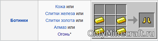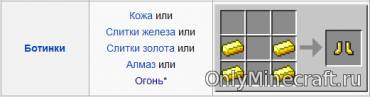 Имейте в виду, если хотите хорошо понимать, как сделать в Майнкрафт ботинки: огненную обувь нужно крафтить, предварительно воспользовавшись командой /give, которая даёт огонь.