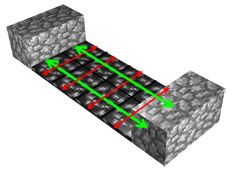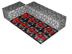 Чтобы батут не пропал под весом крафтера, противоположные его стороны должны быть ограничены твёрдыми блоками.