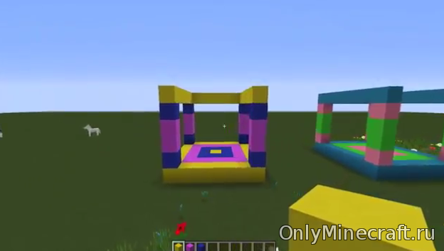 Кроме «джампера», дополнение позволяет скрафтить мягкие блоки, падение на которые не наносит урон. Удобно, ведь шлёпнуться можно и немного мимо, а если окружить территорию вокруг прыжковой площадки чем-нибудь мягким, шоу продолжится.