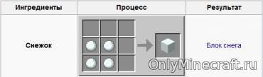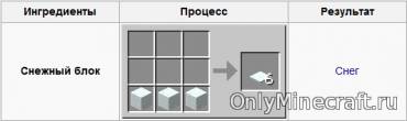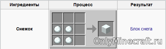 Разрушая снег лопатой, получаем снежки. Из них путём крафта получаем кубики.