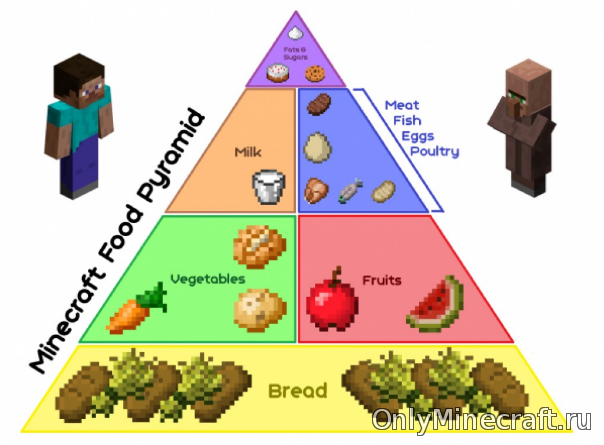 В Майнкрафт, как и в жизни, не поевши, не стоит рассчитывать на долгую жизнь. Отсюда вывод: нужно научиться делать еду. Рецептов здесь вы не увидите, но зато поймёте общие принципы утоления голода в Minecraft. Вся еда делится на такую, которую можно хоть сейчас употреблять, и на ту, которая годится лишь в качестве ингредиента.