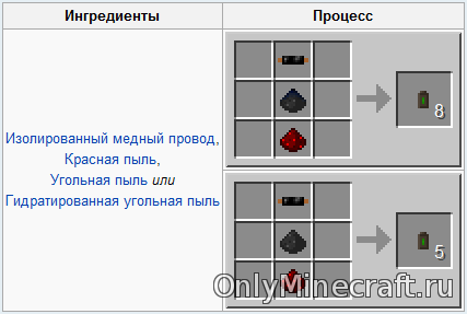 Чтобы вам не бегать по сайту в попытках узнать, как скрафтить батареечные компоненты, мы приведём их рецепты здесь.