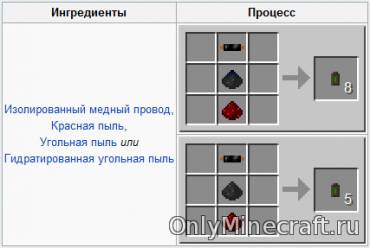 Батарейку в результате крафта вы получаете, естественно, полностью заряженной. Кроме этого, этот предмет в Майнкрафте можно складывать стопками.