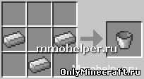 После того как установили данный мод в minecraft, вам нужен будет камень под названием глоустоун и из этого камня строим своеобразную рамку как показано в видео. Размерами 4 на 6-ть блоков. Так же игрокам понадобиться вода, налить воду уже в приготовленную «рамку». Для этого вам понадобиться ведро, крафт которого показан на рисунке ниже. Затем обязательно набрать в ведро воды (можно делать в любом доступном водоеме) и вылить в портал. Нужно заполнить обязательно всю рамку портала, иначе он не будет работать.